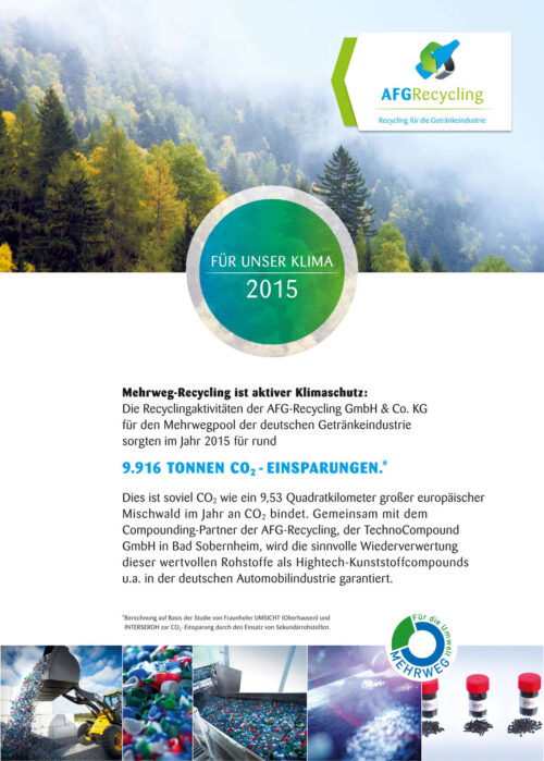 Die AFG-Recycling schafft gemeinsam mit den Sekundärmaterialien ihrer Kunden ressourceneffiziente Kreisläufe und leistet somit einen wertvollen Beitrag zum Umweltschutz. Auch zukünftig wird das Unternehmen gegenüber Kunden die CO2-Bilanzierung offenlegen, da die Nachhaltigkeit des Getränke-Mehrwegsystems als wichtiger Aspekt kommuniziert und gefördert werden sollte.